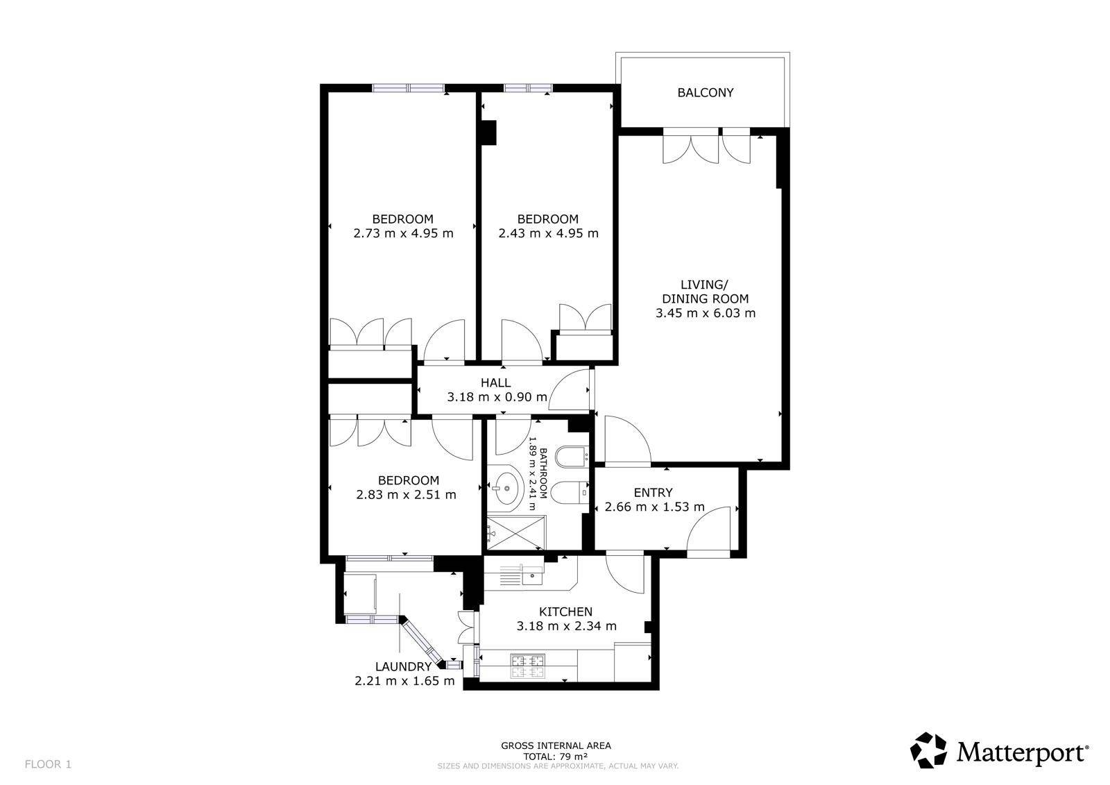 - Área total útil: 71 m2.